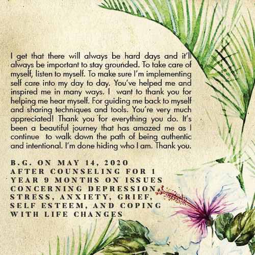 Working with a mental health professional creates a safe, designated, confidential space in your week for you to explore the right solutions to these problems.